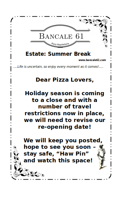 Revised re-opening date… …watch this space! August 17, 2020August 18, 2020 ~ bancale61 Share this: Click to share on X (Opens in new window) X Click to share on Facebook (Opens in new window) Facebook Click to print (Opens in new window) Print Click to share on LinkedIn (Opens in new window) LinkedIn